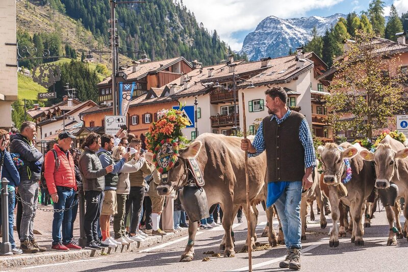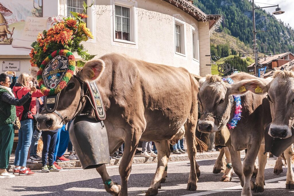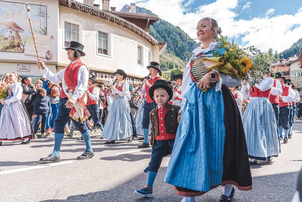 Der Herbst ist die Jahreszeit für die Ernte der wertvollsten Früchte, derjenigen, die nach Wald duften. Während die Dolomiten vor Düften und Farben nur so strotzen, ist der Herbst im Fassatal vor allem der Monat der Rückkehr. Von den Hochalmen bringen die Hirten die besten Käsesorten, die aus der Milch der Sommerblumen hergestellt werden. Die Kühe, die ihnen folgen, ziehen in einer Prozession als Königinnen verkleidet umher und in den Dörfern wird gesungen, getanzt und gefeiert! Vor der kalten Jahreszeit feiert jede Gemeinde wie in der Vergangenheit ihr Neujahrsfest des Lichts und die Plätze werden mit Produkten und Rezepten geschmückt, die die Intensität des Geschmacks authentisch bewahren.