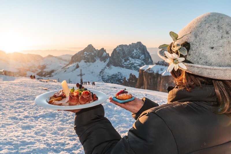 Sobald der Schnee fällt, rücken die ladinischen Dolomiten ins Rampenlicht und Sie bekommen die Hauptrolle! Die Vorstellung beginnt im Morgengrauen und gibt Ihnen bevor die Welt aufwacht die Möglichkeit, auf unberührten Pisten Ski zu fahren – natürlich nach einem hochwertigen Frühstück in Höhenlage. Wenn die Sonne dann hoch am Himmel steht und sich im Schnee spiegelt, beginnt eine Musik, die Sie sogar mit den Skiern an den Füßen tanzen lässt. Sonnenuntergänge in den Farben des Feuers erwarten Sie, wenn das Alpenglühen die schönsten Berge der Welt mit seinen lavaartigen Reflexen erleuchtet, während Sie die authentischstenladinischen Aromen genießen. Wenn Sie gerne den Schnee beim Fallen beobachten oder verschneite Städte bewundern wollen, gibt es eine Volkstradition der Täler, die Sie dazu einlädt, sich an Tänzen, Spielen und Spaß zu beteiligen. Erlebnisse, die Sie nicht verpassen sollten und Termine für Ihren Terminkalender!
