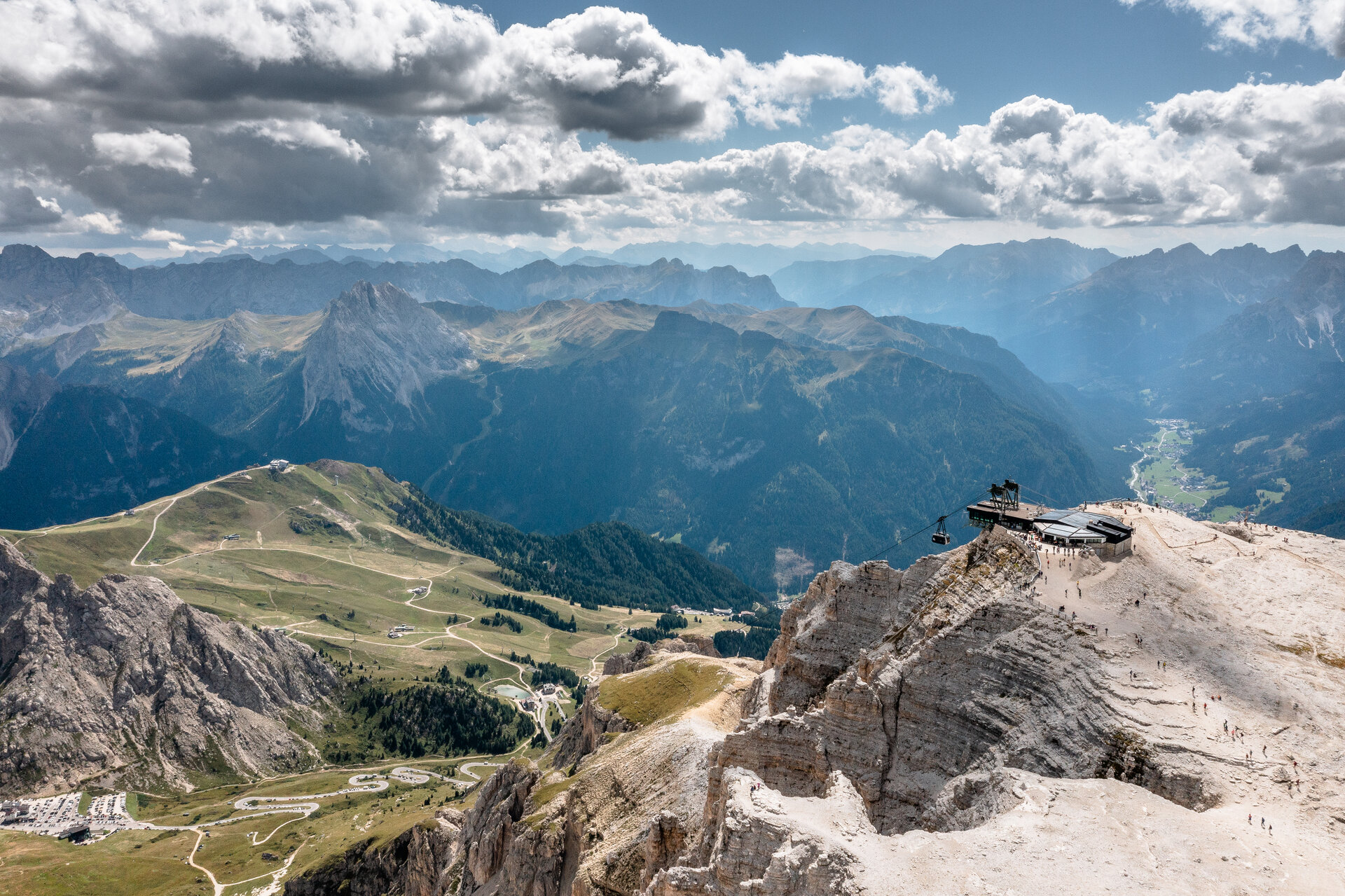 Panorama: spectacular images of the Val di Fassa taken from Sass Pordoi (Canazei), the Terrace of the Dolomites