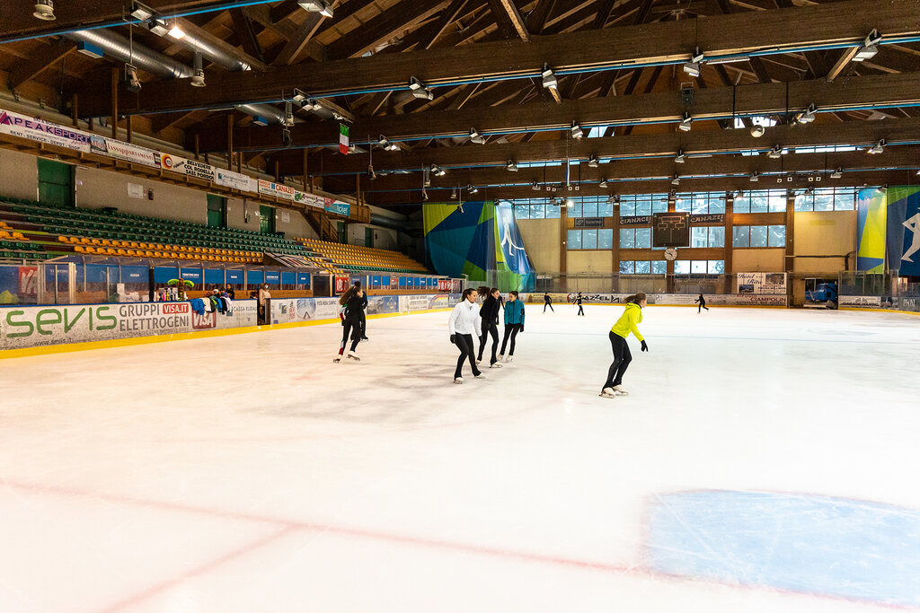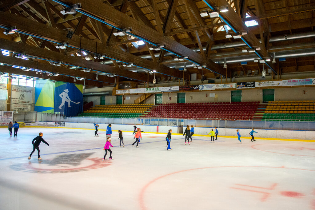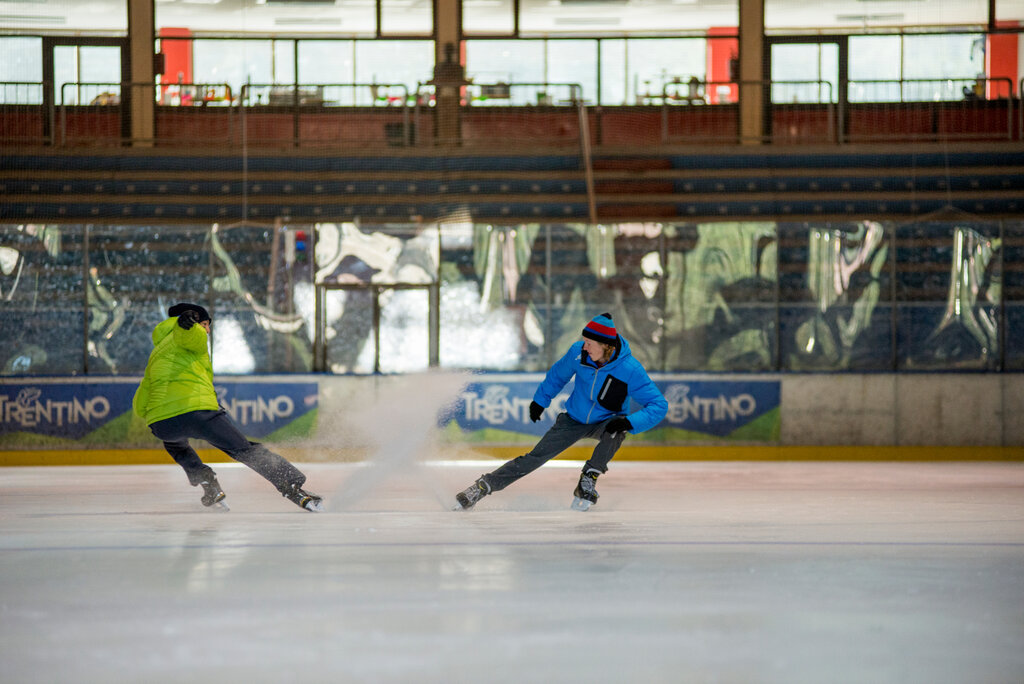 The plate, white, smooth and shiny, invites you to be furrowed with momentum and lightness. At the "Gianmario Scola" indoor ice stadium in Alba di Canazei, a fabulous Olympic track (30 x 60 m with artificial refrigeration) is available for beginners and for those who, on the other hand, are masters of pirouettes and arabesques, to be performed on the edge of the blade to the rhythm of music. The 12,000 square metre structure, which can accommodate up to 3,500 people, allows you to rent skates and also take some lessons to learn the basic technique or improve your style. The companions can assist beyond the balustrades, on the stands, or warm up at the ice bar.