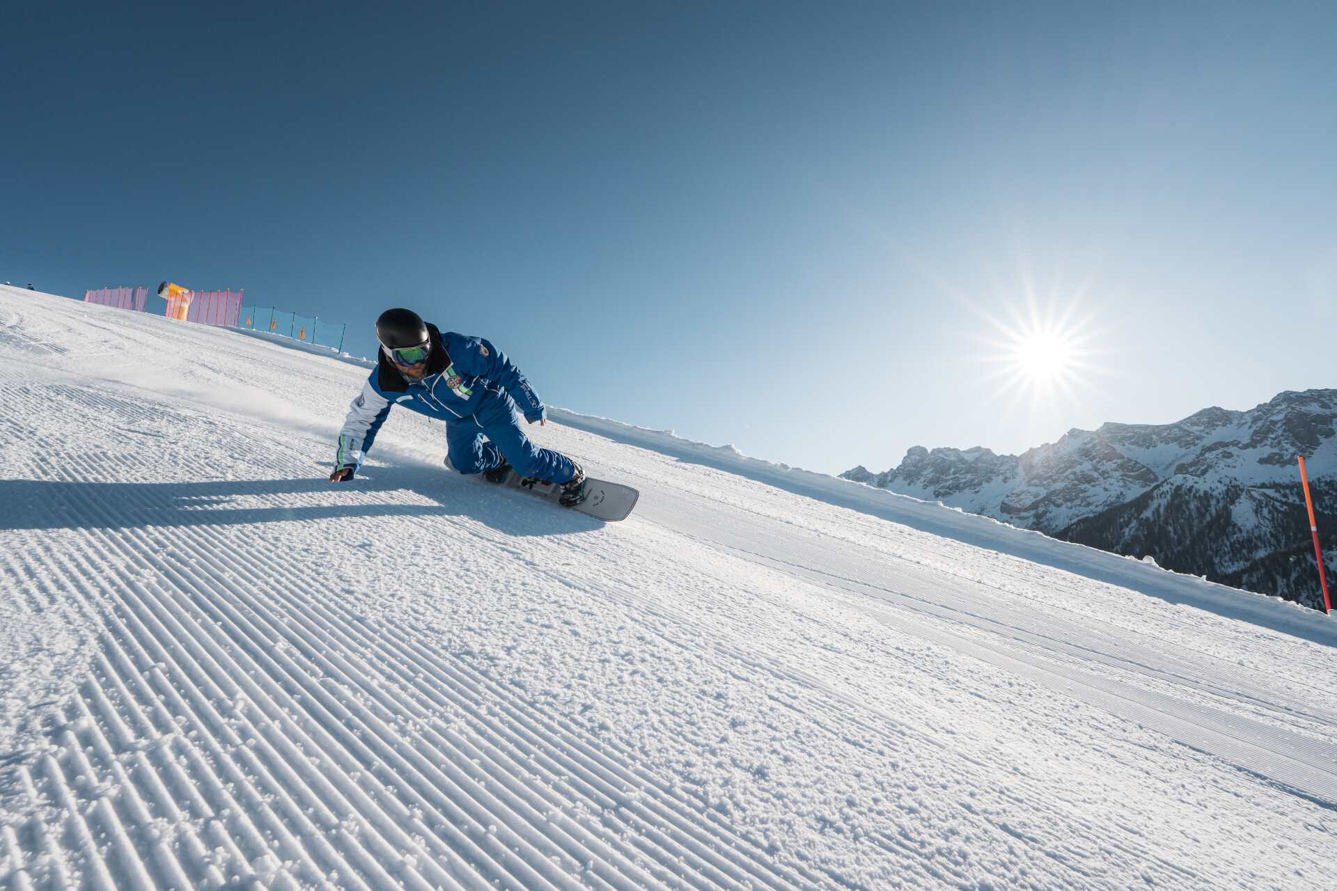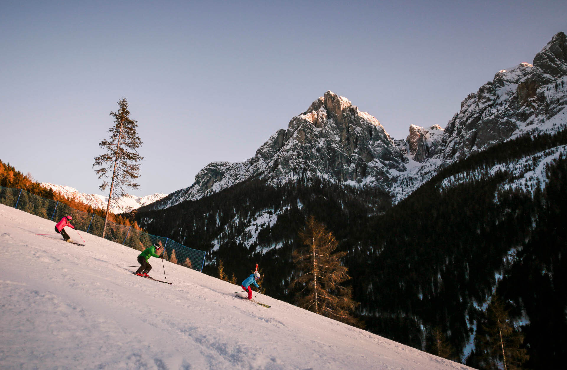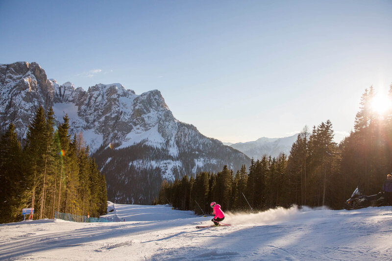 The energy here is palpable - you can feel the explosive vibe, just like the ancient volcano that lends this slope its name. Starting at 1,922 metres, the slope quickly turns technical, with a series of steep walls and gradients reaching up to 58%. All the while, the breathtaking, untamed panorama of Cima Undici and Cima Dodici serves as your constant companion. Towards the end, the slope softens, guiding you smoothly back to the village of Pozza.