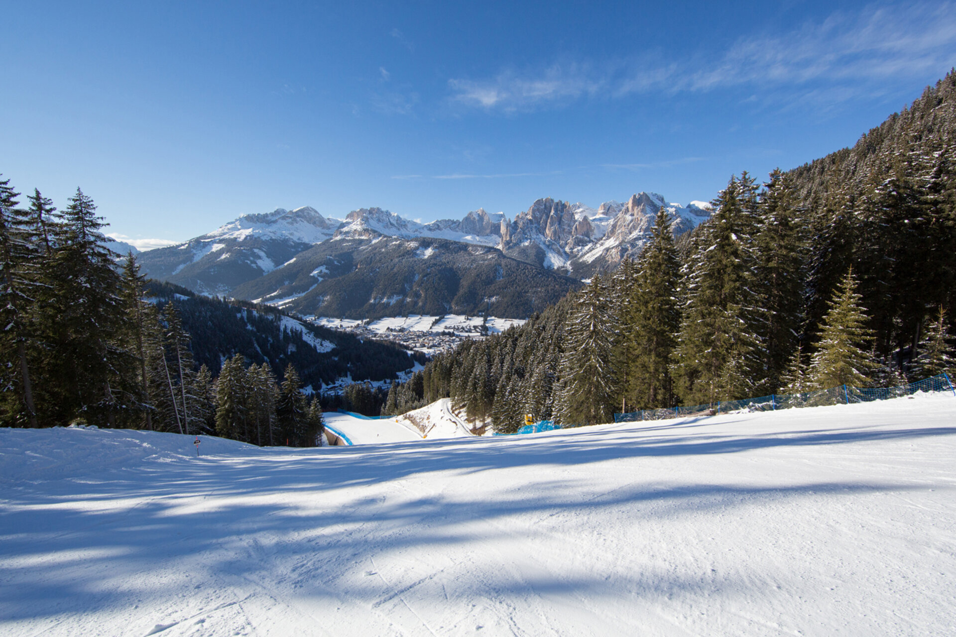 Inaugurated in 2014, the Vulcano slope at Buffaure truly lives up to its "explosive" name. After sharing the initial section with the red "Panorama", the slope veers sharply to the right, launching into a 2 km-long direct descent with an impressive 566 m vertical drop, swiftly returning to the gondola departure station in "Meida". Starting at 1,922 m on Buffaure, this highly technical slope is designed exclusively for experienced skiers seeking an exhilarating challenge. With average gradients of 30% and peaks of 58%, it features steep, demanding walls that will test your skills to the limit.