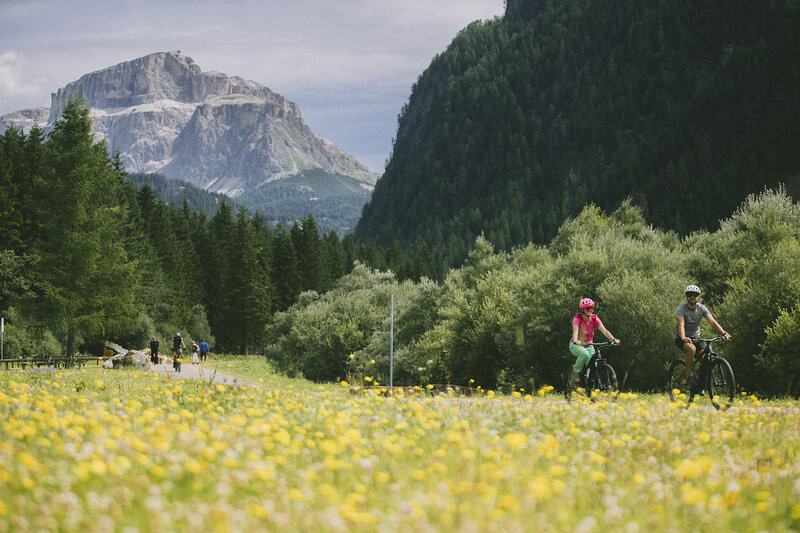 Persone che pedalano sulla ciclabile delle Dolomiti in Val di Fassa | © Federico Modica  - Archivio Immagini ApT Val di Fassa